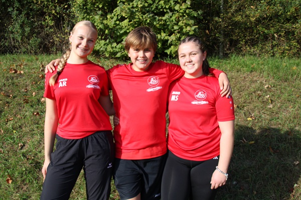 Freuten sich über einen gelungenen Hammerwurfwettkampf am Ende der Saison: Amelie Rumpf, Philip und Marie Sahler.