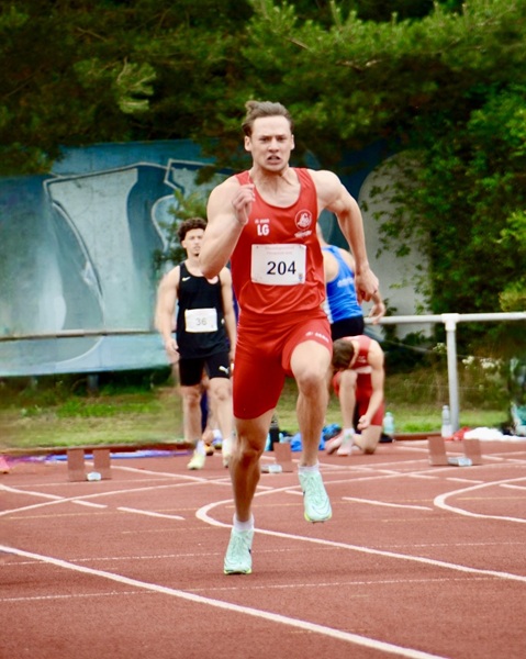 Große Freude bei Sven Medenbach: Er wurde in exzellenten 14,78 s Deutscher Meister der M35 im 110 m Hürdenlauf und sicherte sich zudem die Bronzemedaille über 200 m.