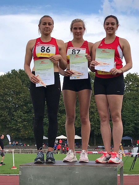 Beim 2. Tag der HM Mehrkampf in Darmstadt konnte das Frauen Team um Lea Seyffert, Lorena Weber und Madleen Manneschmidt überzeugen. Madleen schaffte es mit guten Leistungen im Weitsprung von 4,88 m und 22,17 m im Speerwurf eine gute Ausgangslage für die abschließenden 800 m. Dort stellte sie mit 2:28,54 min eine neue Bestleistung auf und sicherte sich als Jugend U18 den 2. Platz mit insgesamt 3.932 Punkten. Direkt dahinter folgte Lea mit 3.894 Punkten und folgenden Leistungen: Weit 4,76m - Speer 25,61 m - 800 m 2:44,45 min.