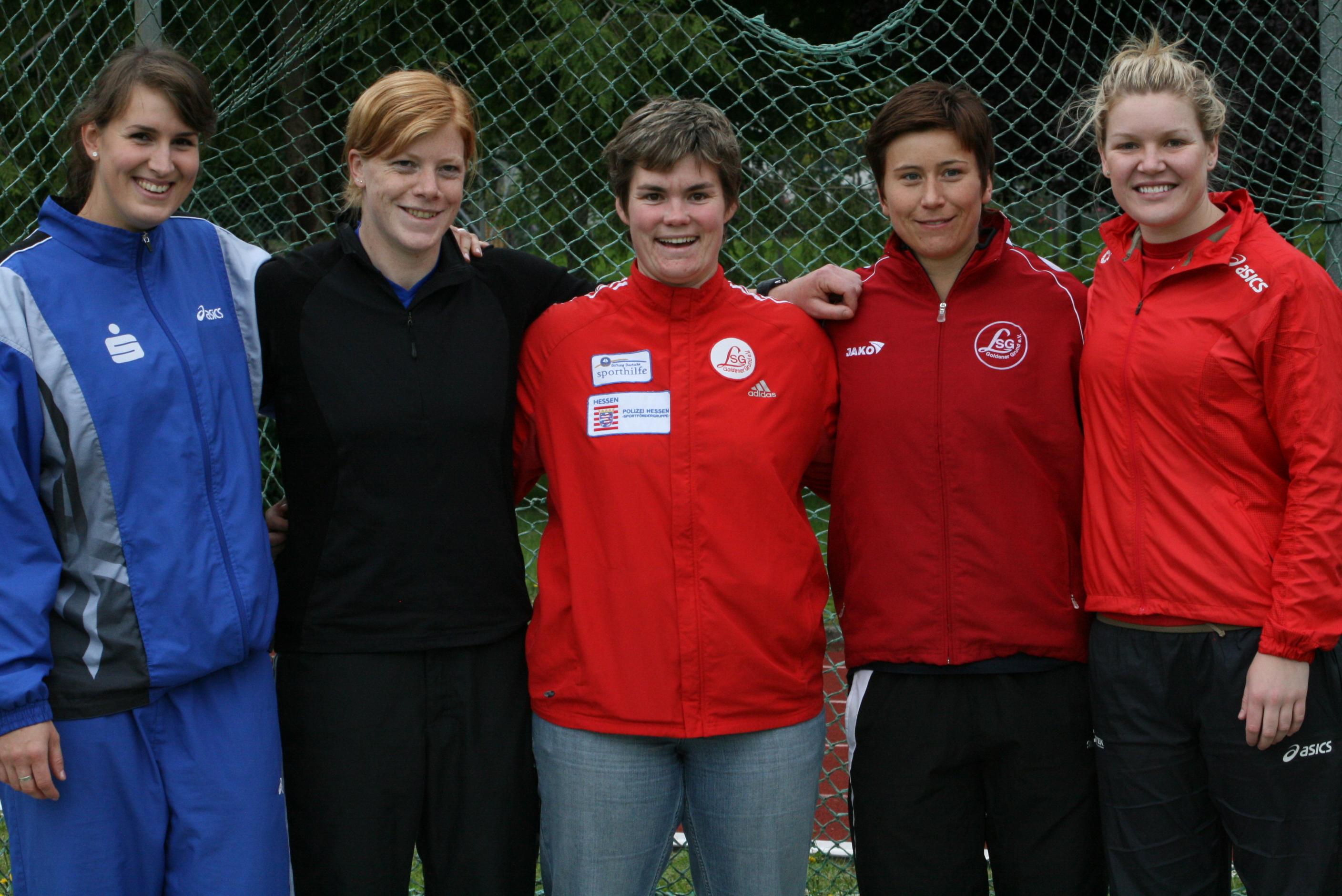 Dani Samuels, die gerade ein Trainingslager in Köln absolviert, war am Freitag schon in Niederselters angereist und hatte die Nacht in der Rickerhütte in Eisenbach verbracht. Der Wettkampf begann auch für Dani mit einem heftigen Rückenwind, der den 1kg schweren Diskus sehr stark zu Boden drückte. Dani warf aber auch so 59,76m und gewann den Wettkampf souverän gegen Julia Bremser von der LSG Goldener Grund, die mit 55,18m an ihre guten Leistungen von Kassel anknüpfen konnte und dabei auch die 2. und 3. von Kassel diesmal hinter sich lassen konnte. Dritte wurde Ulrike Giesa von der LAC Quelle Fürth mit 54,54m vor Heike Koderisch vom SC Magdeburg, die mit 52,96m vierte wurde. Bei der weiblichen Jugend A überzeugte Marike Steinacker vom TSV Bayer 04 Leverkusen, die mit 49,76m sehr zufrieden war.