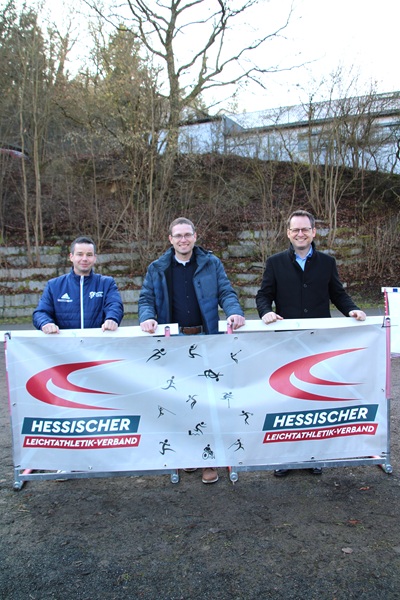 Große Ehre für die LSG Goldener Grund Selters als Gastgeberin: Bürgermeister Benjamin Zabel (Mitte) und die beiden Landtagsabgeordneten Tobias Eckert (re.) sowie Andreas Hofmeister - gleichzeitig stellvertretender Vorsitzender des Sportkreises Limburg-Weilburg - besuchten die Veranstaltung und nahmen einige Siegerehrungen der besten hessischen Athleten vor.