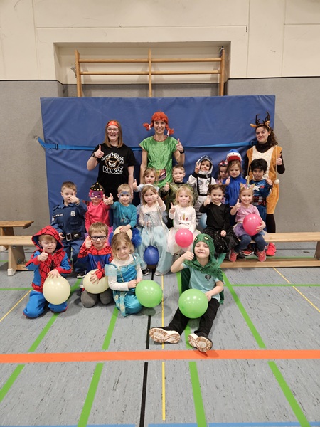 Passend zur fünften Jahreszeit hatten die Übungsleiterinnen der LSG-Kleinkindergruppe, Jutta Rumpf, Leoni Blumentrath und Kaja Hepp, eine närrische Stunde vorbereitet. Alle erschienen verkleidet und hatten jede Menge Spaß beim lustigen Treiben in der Selterser Sporthalle. Los ging es beim Stopptanz mit dem Gute-Laune-Lied „Wir haben oben gute Laune, unten gute Laune, vorne gute Laune, hinten gute Laune...“ und es folgten die üblichen Stimmungsklassiker, zu denen sich die Kinder bewegten. Spiele mit bunten Luftballons durften natürlich auch nicht fehlen. Zum Abschluss gab es für alle eine Süßigkeit zum Naschen. Die Kinder waren begeistert von dieser besonderen Stunde.