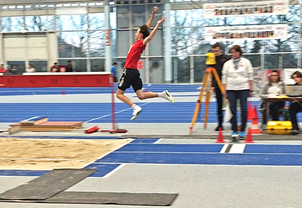 Ihre Schwester Lu – erst 15 Jahre alt – startete im Weitsprung bei der älteren U18 und schlug sich klasse. Sie sprang auf 5,08 m und wurde Sechste. Die gleiche Platzierung gelang Jayden Seck im Weitsprung der männlichen Jugend U18. Mit 5,79 m im ersten Versuch schaffte er gleich einen guten Einstieg und blieb nur knapp unter seiner Bestweite von 5,82 m aus der Freiluftsaison. Ihm gelang ein konstanter Wettkampf mit nochmals 5,79 m und am Ende 5,81 m im letzten Durchgang. Allerdings hat er noch Potential, denn zu keinem Zeitpunkt traf der das Brett und verschenkte dadurch jeweils wertvolle Zentimeter. Sein Trainer Sven Medenbach zog als Fazit: „Wenn Jayden das Brett trifft und auch die Landung gut durchzieht, sind locker die 6 m drin!“