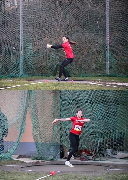 Amalia Meyer (oben) und Hanna Schneider wurden jeweils Vierte im Hammer- bzw. Diskuswurf.