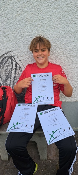 Gleich Titel 3 sicherte sich Paul Kaiser in der M11. Er gewann über die 50 m in 7,64 sec, im Weitsprung mit 4,25 m und im Hochsprung mit 1,28 m, wobei Leonard Gindra nur wegen mehr Fehlversuchen auf den 2. Platz trotz Höhengleichheit kam.