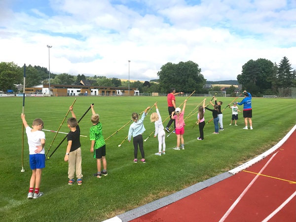 Zum Abschluss ihrer Kindergartenzeit erlebten die Vorschulkinder zusammen mit LSG-Trainer Thomas Laux eine Schnupperstunde im Stabhochsprung und waren begeistert dabei.