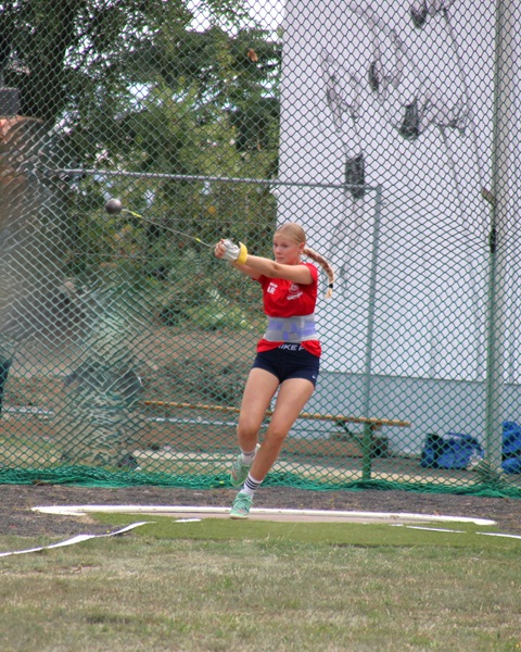 Amelie Rumpf erzielte mit hervorragenden 46,66 m einen neuen Kreisrekord im Hammerwurf der W13.
