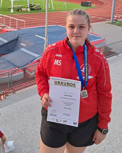 Pauline Schmitt hatte sich im Hammerwurf der W15 für die Süddeutschen Meisterschaften qualifiziert. Alle ihre drei Versuche waren gültig und gelangen ihr gut. Allerdings wirft sie aktuell nur mit einer Drehung, was limitierend ist. Sie erzielte solide 28,01 m und wurde Zwölfte. Im Training wird sie nun die zweite Drehung angehen.